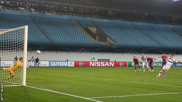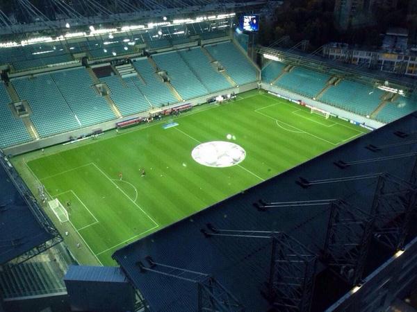 Bayern Munich beat CSKA Moscow by a goal to nil in a Champions League group stage match that was played in an empty stadium. Russian side CSKA were forced to play in an empty stadium as a punishment from UEFA after their fans were found guilty of passing racists comments and chants in a game last year. This came as a blow to numerous Bayern fans as well who missed out on an opportunity to support their favourite team. One small group of fans however, refused to take no for an answer and actually managed to see the game, albeit from a rather lofty angle. A group of around 50 Bayern fans managed to rent out an apartment that overlooked the Arena Khimki just for the night so that they could see the game! Tobias Schweintstieger, the older brother of Bayern man Bastian was one of the lucky fans who could see the game as it happened. He tweeted this photograph to give us an idea of their view.