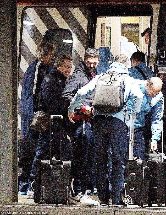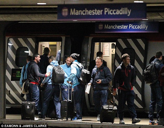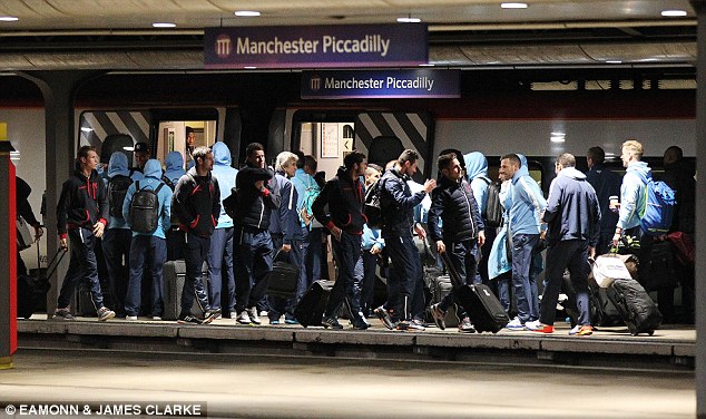 The two teams crossed each other on a platform at Manchester’s Piccadilly Station as they were travelling to play their respective Premier League games. Manuel Pellegrini’s City side were going to London from Manchester for their game against QPR at Loftus Road.